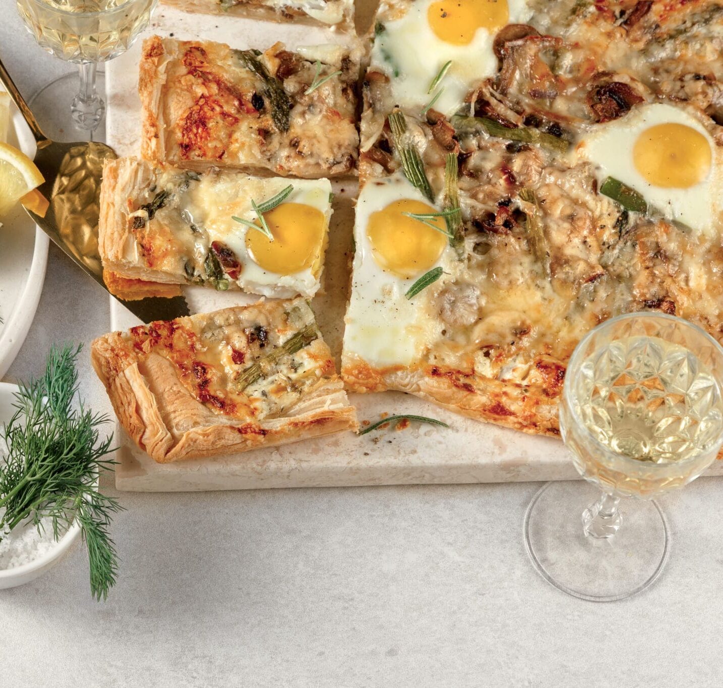 Tarte feuilletée aux œufs, asperges et crème fraîche