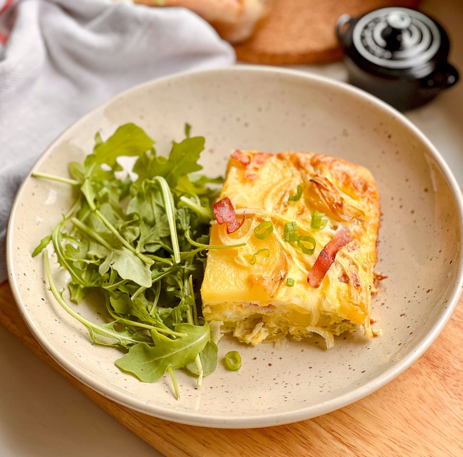 Cette tortilla inspirée de l’Espagne est une variation réconfortante d’un grand classique : des pommes de terre bouillies fondantes, des oignons et de savoureuses lanières de jambon sont enveloppés dans des œufs moelleux. Cuite au four jusqu’à ce qu’elle soit bien dorée et gonflée, elle constitue un plat simple mais satisfaisant, parfait pour un brunch, un lunch ou même un souper léger. Servez-la chaude ou à température ambiante, garnie d’herbes fraîches au goût.